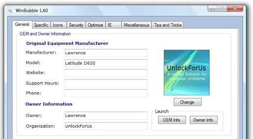 3. Open Win Bubble 1.76 > General > Change OEM logo.